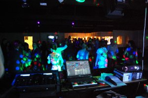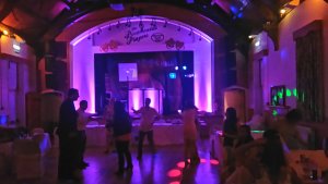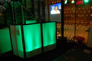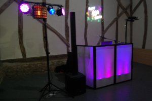 > Mood lighting - uplighters to colourwash the walls around the DJ booth
